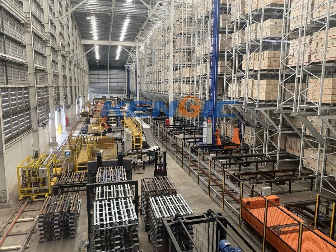 该项目从2021年10月实施,2022年3月正式交付,规划设计了超过15000个货位,定制部署了7套双深堆垛机(直轨/弯轨)仓储系统、三工位RGV搬运系统、AGV搬运系统、顶升移栽系统、托盘输送系统、视觉在线拣选系统、机械臂及拆码盘机等,实现成品家电的出入库无人化、存储集约化、库区面积利用最大化及设备系统可视化等需求。