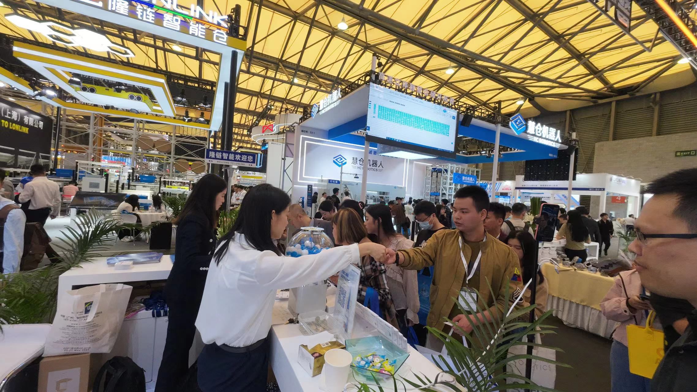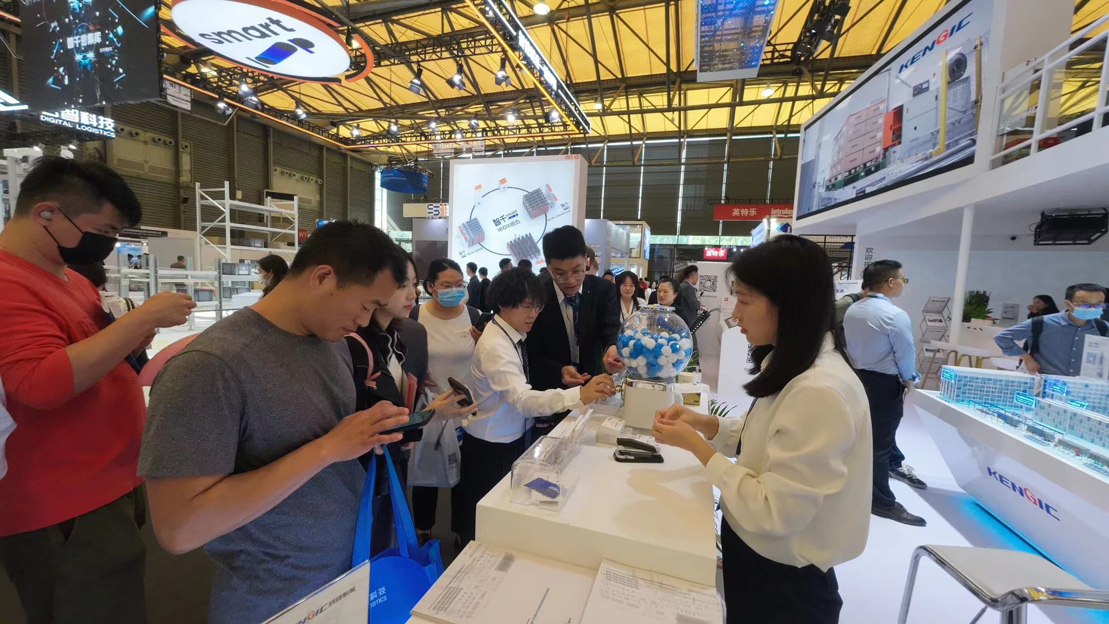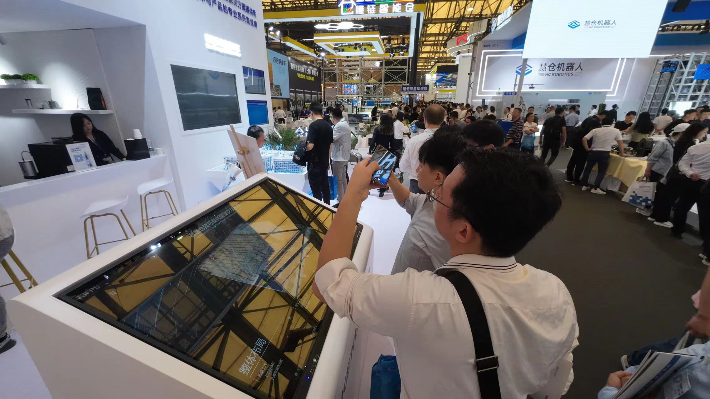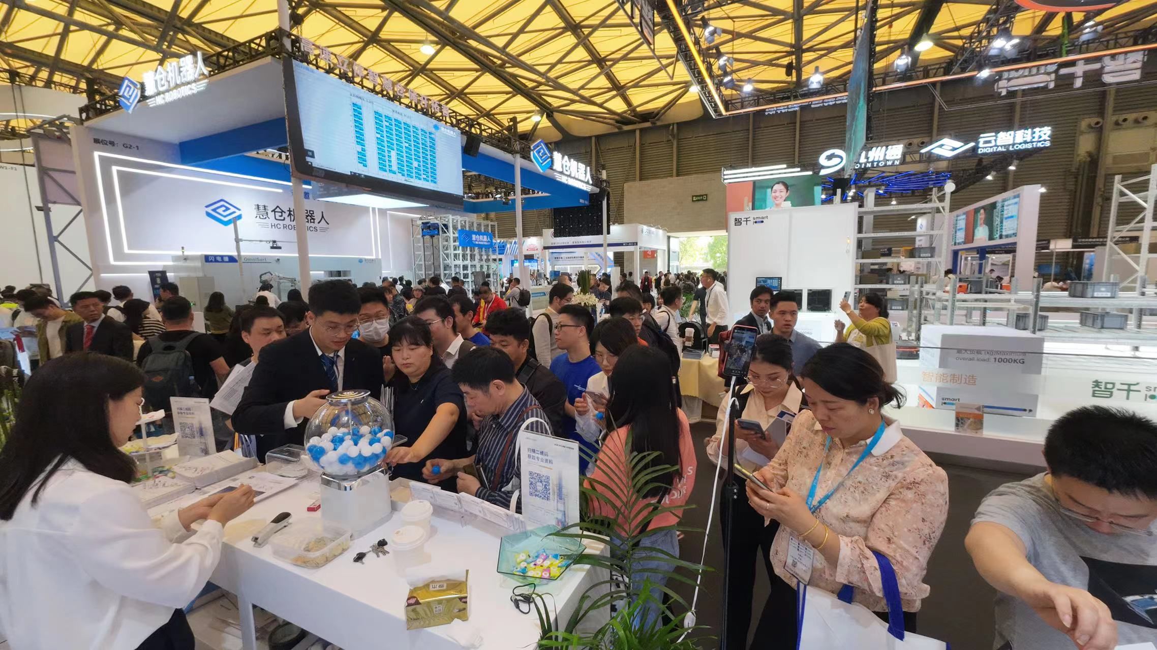 在CeMAT展会现场,为了带给观众的最佳观众体验,好博智能设置了多个数智交互区域。