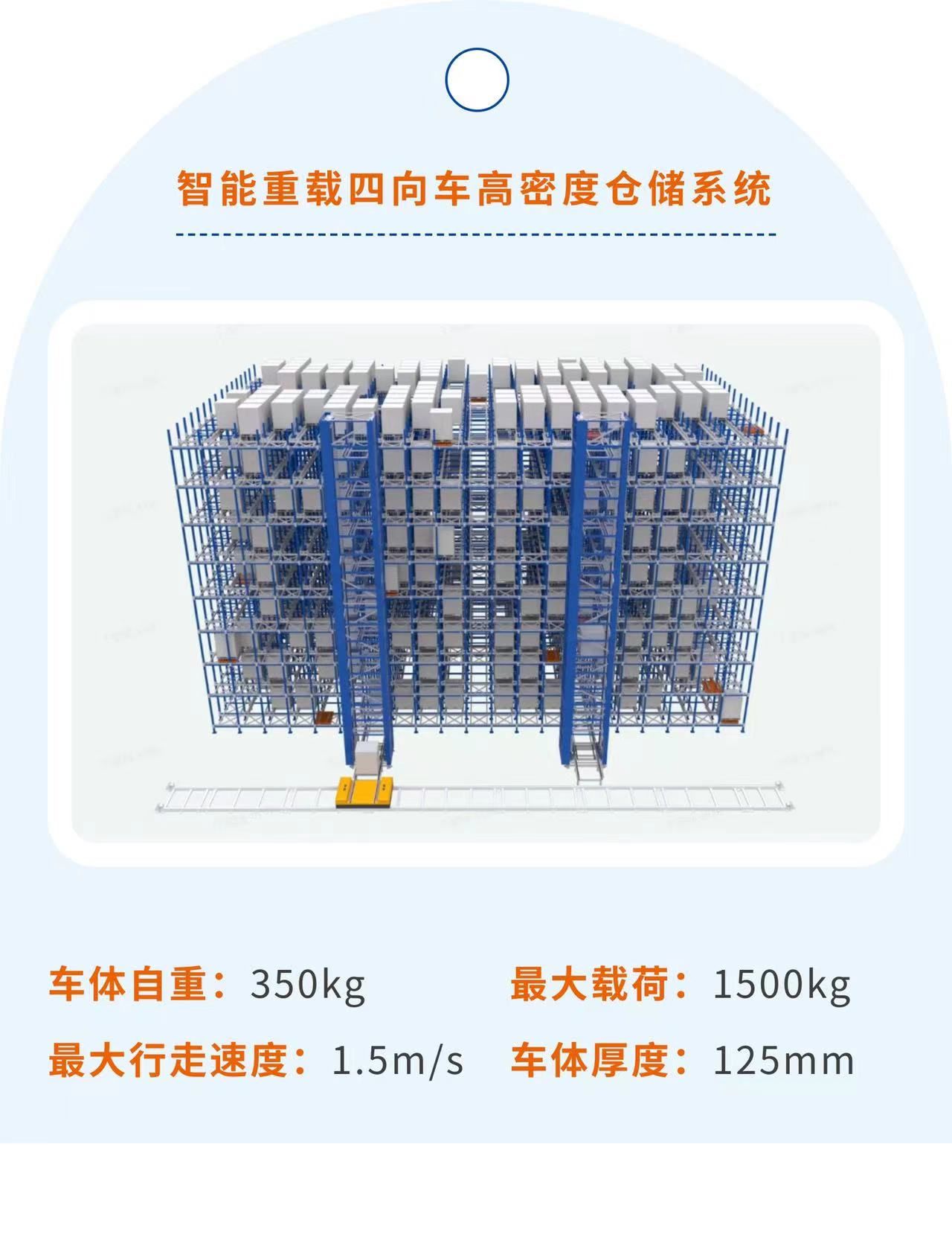 智能重载四向车高密度仓储系统适用于医药、冷链、智能制造等行业的全自动高密度仓储场景,满足客户在存储空间狭小、场地不规则的情况下对自动化储分一体化的需求,可根据客户的流量进行系统拓展,推动了行业技术进步,产生了良好的社会效益。