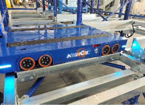 托盘四向穿梭车作为多穿系统的核心设备,其主要功能是将托盘盘从一个点位搬运到另一个点位。由于其车辆具有2套行走轮系,车辆可以在轨道换向口做90°换向运行行,在换层提升机的配合下,车辆也可以跨层作业。其产品结构主要由直行轮系、横行轮系、顶升组件、控制组件等组成。
