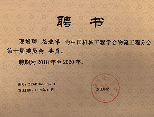 龙进军董事长受聘为中国机械工程学会物流工程分会第十届委员会委员